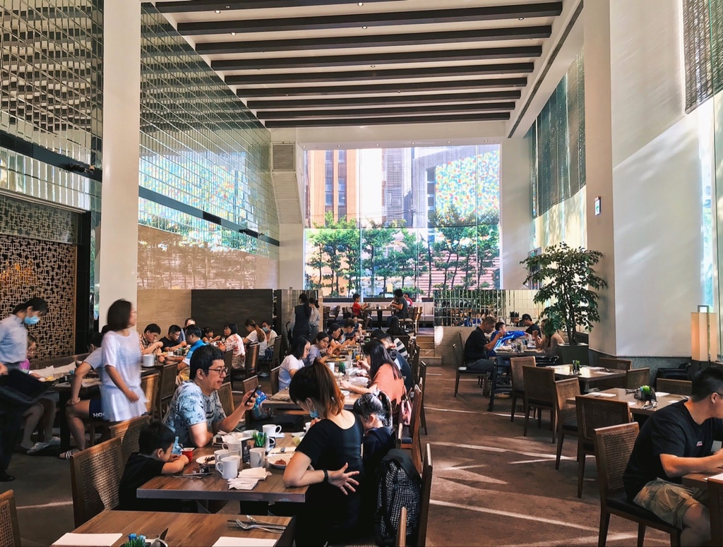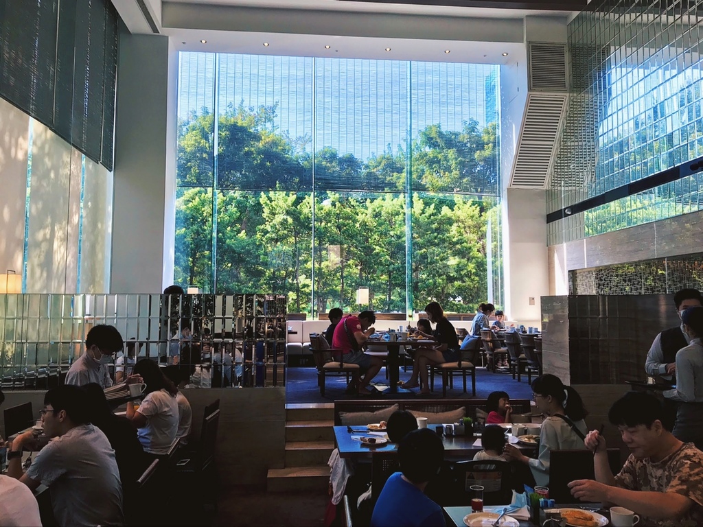 這次的座位是在栢麗廳裡頭,取菜的位置相當方便,座位左右兩側都有大片的玻璃窗可以看到戶外美麗的景色,讓人一早心情就超好!!