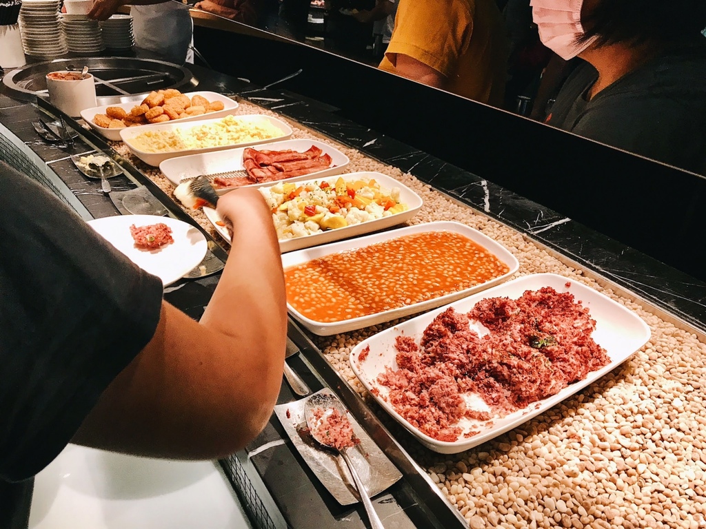 一般西式早餐的buffet菜色當然不可少,除了常見的炒蛋、煎培根、薯餅外,還有特別的鷹嘴豆和牛肉泥。