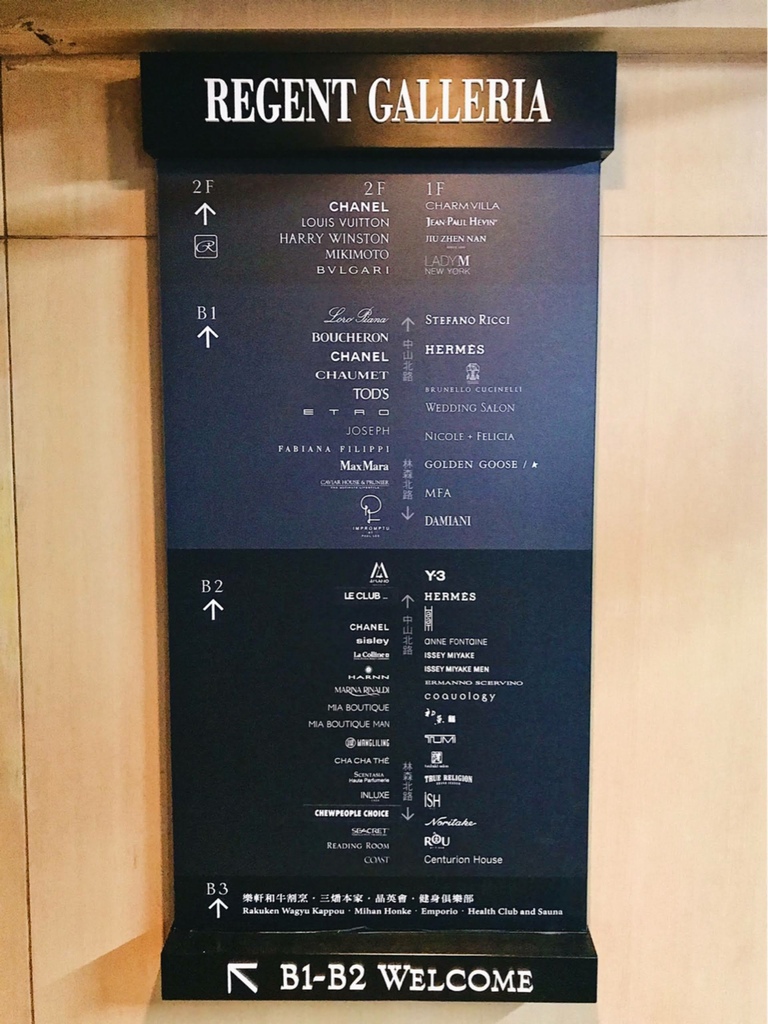 最後要帶大家來晶華B1-B2的「麗晶精品」,這裡擁有「全台精品首府」之美譽,也是台北市五星級酒店內規模最大的精品購物中心。