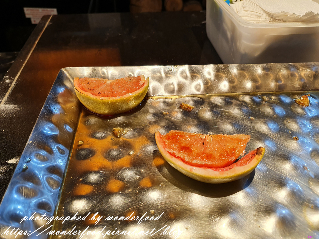 建議主要就是海鮮、生魚片、現沖牛肉湯、現燙牛肉壽喜燒、白蘭地焦糖葡萄柚,這些一定要吃