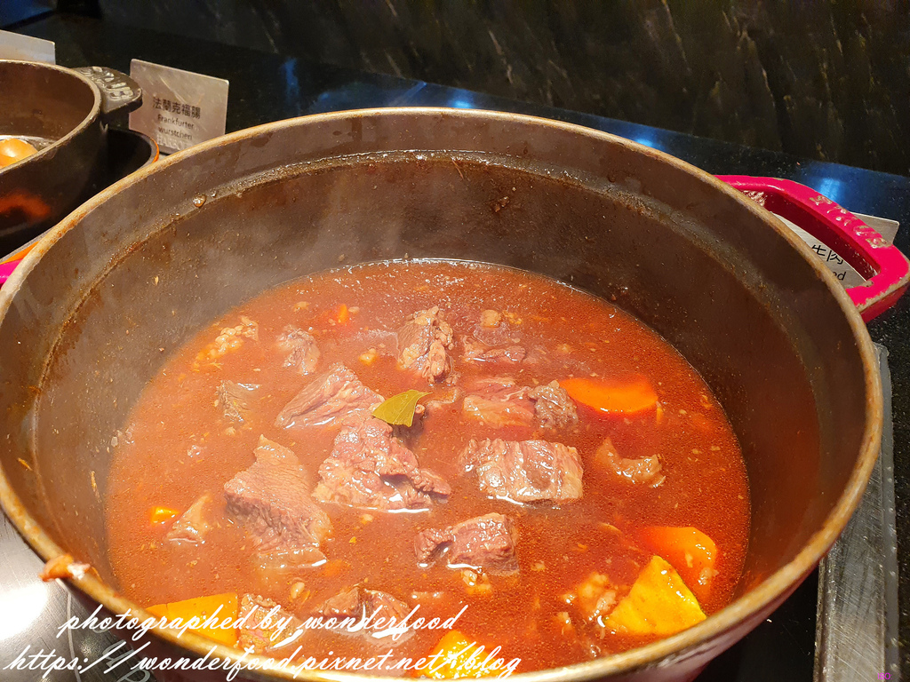 紅酒燉牛肉、酸菜豬腳、法蘭克福腸、脆薯、薑黃炸田雞腿、奶油梅醬鮮魚、