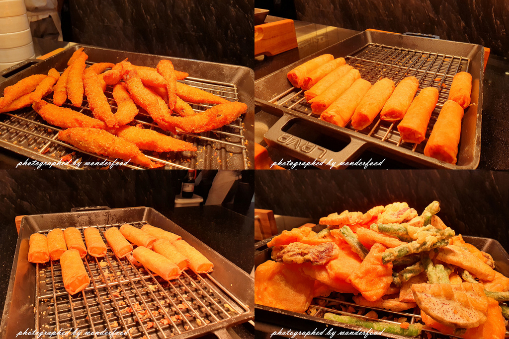 酥炸柳葉魚、香酥炸春捲、蔬菜天婦羅、馬蹄條