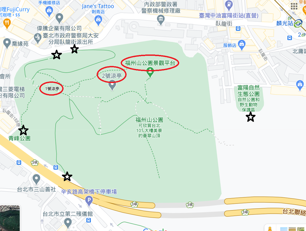 以及從富陽自然生態公園爬連接步道過去(沒路燈)