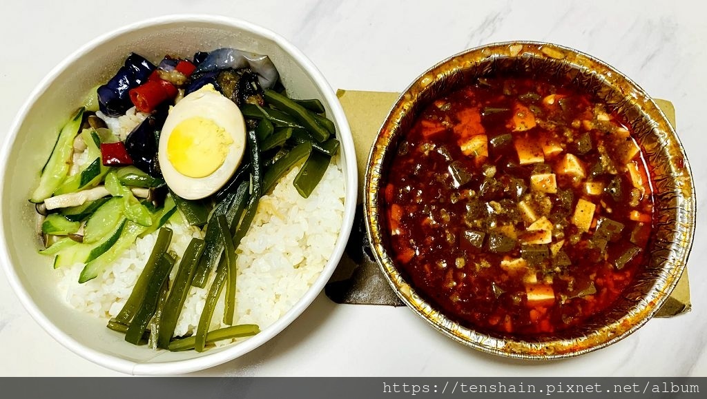這一次訂的超級麻婆豆腐飯 ( $250 元 ) ,和糖醋雞丁飯 ( $160 元 ) 。餐點到手的溫度之高,是我這段日子以來,吃過的外帶餐點之最!其中鋁箔盒裝的麻婆豆腐,溫度甚至高到會燙傷手的程度,真誇張!