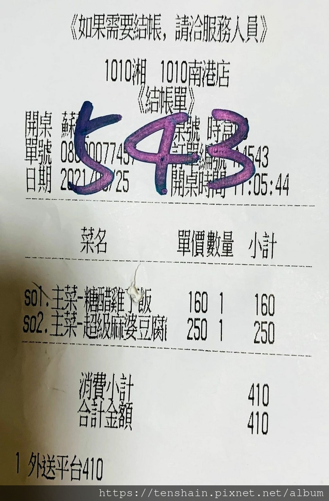 記得我用 Uber Eats app 訂餐時,查詢"時時香",系統跳出的分店明明是時時香中式個人餐盒南軟園區店,為什麼外送來的結帳單上標示的卻是 1010 湘 南港店?難怪一開始我們就覺得奇怪,中信好食城也算是我們生活圈內很熟悉的地方,印象中根本沒有時時香的分店啊!後來查了一下官網,時時香確實沒有南軟園區店,只有台北南港車站店,所以說我訂的到底是 1010 湘 ,還是時時香的便當?我想,這應該就是應變夠快的企業,已經開始做資源共享的動作,盡可能捉住每一張可能的訂單。
