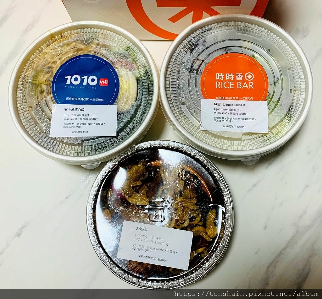 今天的餐點,讓我更混亂了!一個餐盒的貼紙是時時香,另一個貼的卻是 1010 湘的標籤?難道是店家在暗示我,下次直接訂 1010 湘 就好了,是嗎?