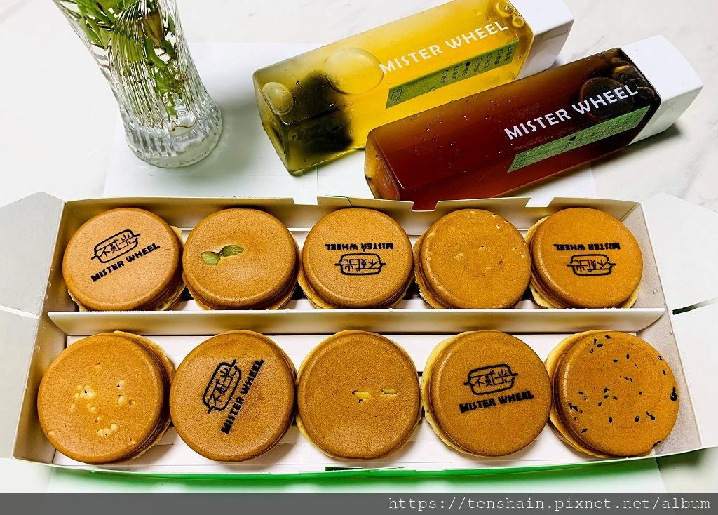 最後用鑄鐵烙上不貳光的 LOGO ,稍微放涼一下再裝盒。就這樣,一盒色、香、味俱全的車輪餅,就完成啦~真的不是蓋的,這盒車輪餅超香,回家的路上,整個車子裡面香味濃到連口罩都擋不住!