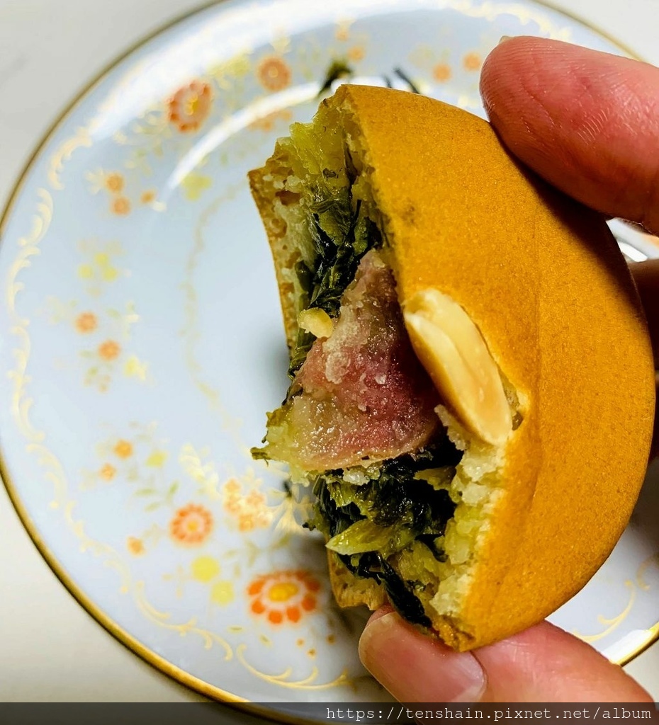 阿嬤的味是期間限定款,使用台式酸菜為主料,夾上一片台式臘腸。微辣、微甜的酸菜,配上臘腸口感,顛覆了以往我對車輪餅口味的既定印象。