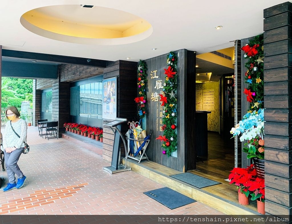 走到餐廳外面,映入眼簾的是典雅的門面,喜氣洋洋的聖誕紅,妝點得十分討喜。