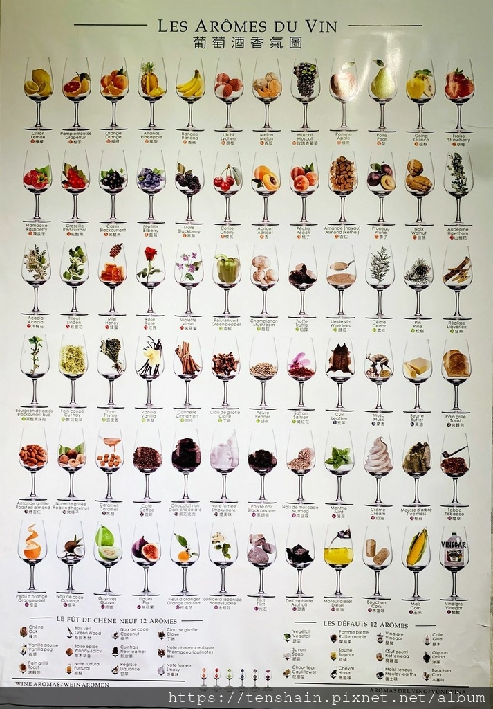 我知道葡萄酒的學問很大,但是看了這張圖,才知道原來不同的酒款,對應的果香也不一樣!