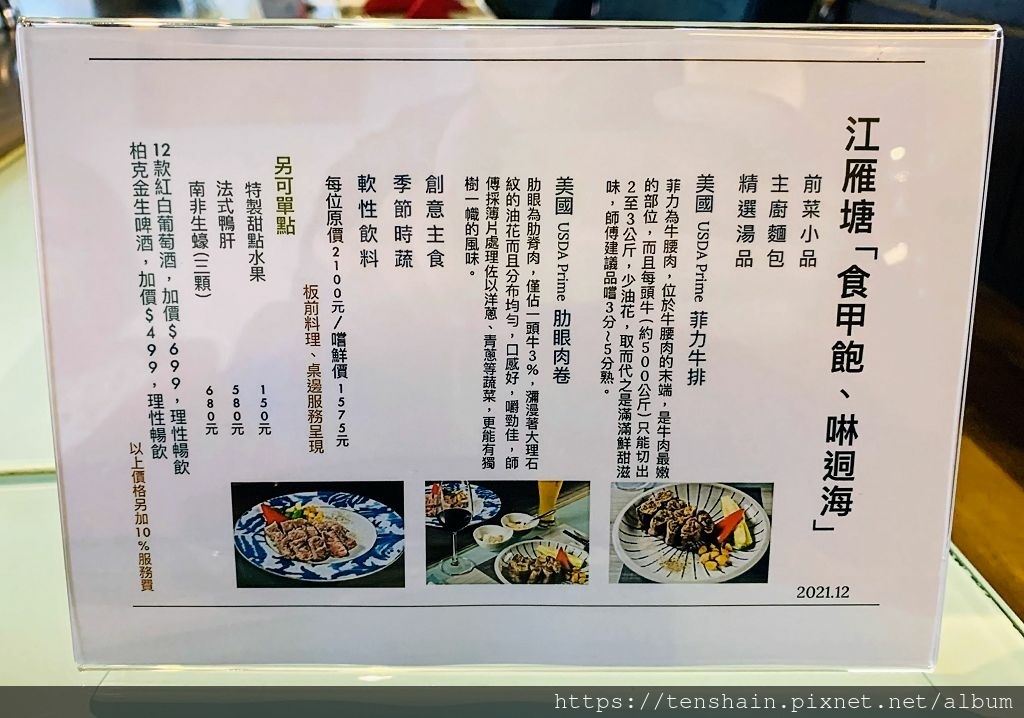 本文同步發表於:聖誕老公公真的來了!【江雁塘新時尚鐵板燒】推出「食呷飽、啉迵海」的超級優惠破盤價方案!美國USDA Prime菲力牛排吃到飽嚐鮮價只要NT$1,575;加 699 元,還有12款紅、白葡萄酒無限蜴飲!