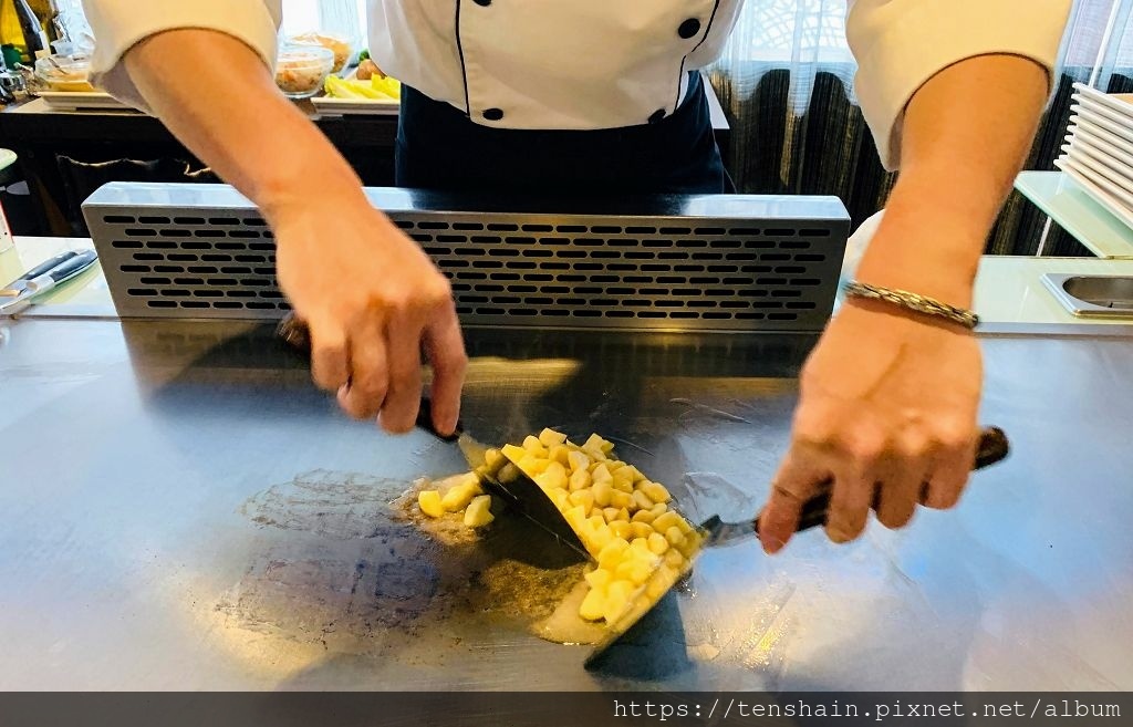 鐵板燒的靈魂是師傅,好的師傅可以讓煎鏟鏗鏘作響的撞擊聲,和食材在高溫鐵板上滋滋作響的聲音,交織成一首首悅耳的交響曲。讓賓客在愉悅耳的氛圍裡,眼睛欣賞食材由生而熟的變化,鼻子聞著食物散發的陣陣香氣,嘴巴品嚐著美味精緻的料理,整個用餐期間,五感同時滿足,食慾為之大開。