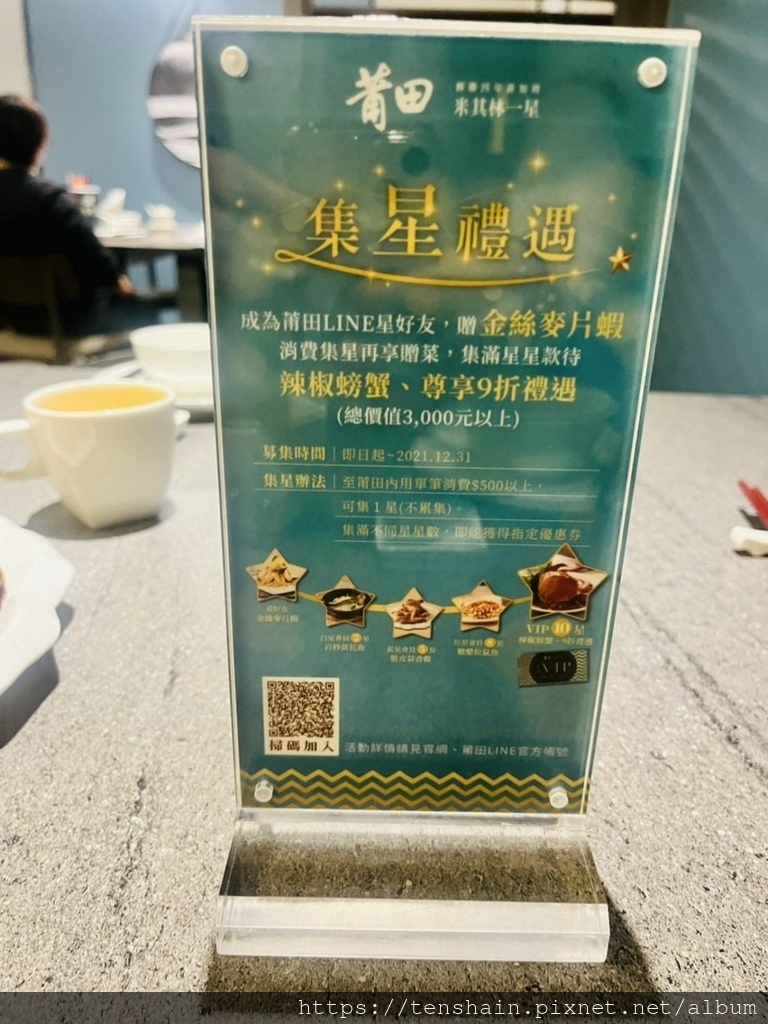 莆田餐廳有集星禮遇活動,成為莆田 LINE 星好友,贈『金絲麥片蝦』。消費集星再享贈菜,至莆田內用單筆消費 $500 以上,可集 1 星。集滿不同星星數,即能獲得指定優惠券。