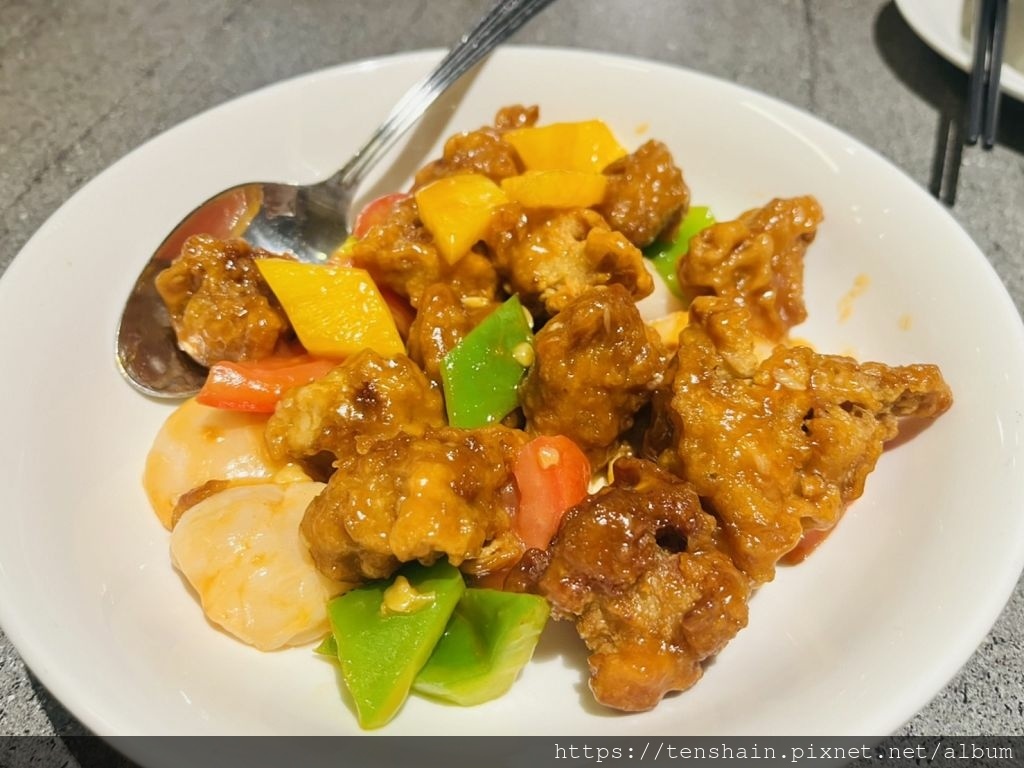 「莆田荔枝肉」是莆田傳統名菜,創始於清初。這道菜我要大推,嚴選台灣梅花豬搭配酸甜醬汁,因肉色帶紅,形似荔枝而得名。說是梅花肉,可是吃起來不會感覺到有肥肉的存在,因為炸得夠酥。有點像糖醋里肌的味道,厲害的是肉乾卻不澀,不敢吃肥肉的朋友,也可以放心大嚼。