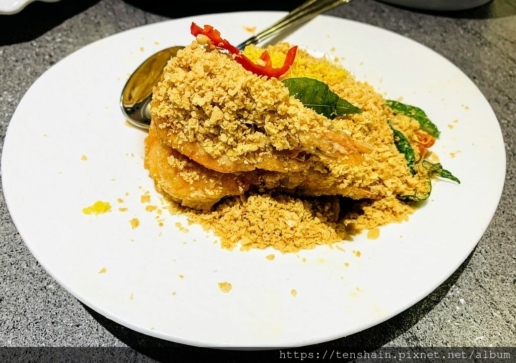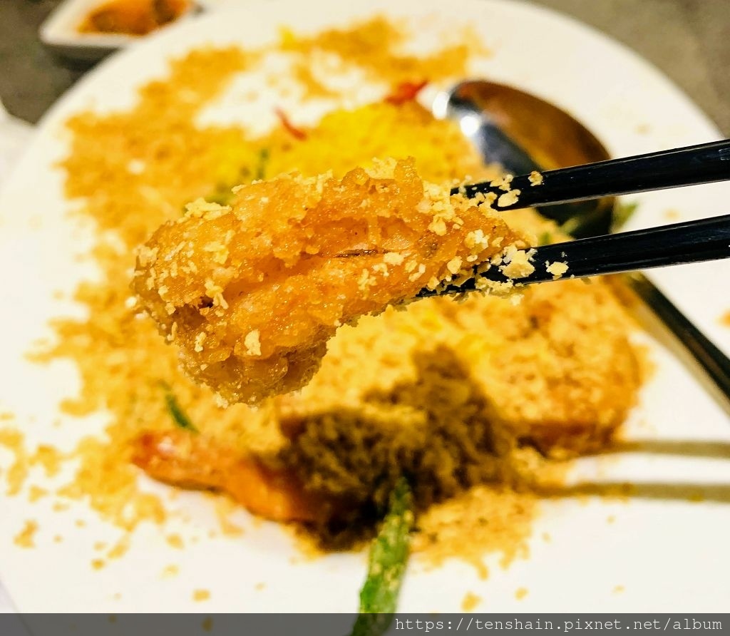女兒知道我愛吃蝦,特別點了「金絲麥片蝦」,這是小份的,只要 290 元。金黃的顏色很討喜,撲鼻的香味令人垂涎。