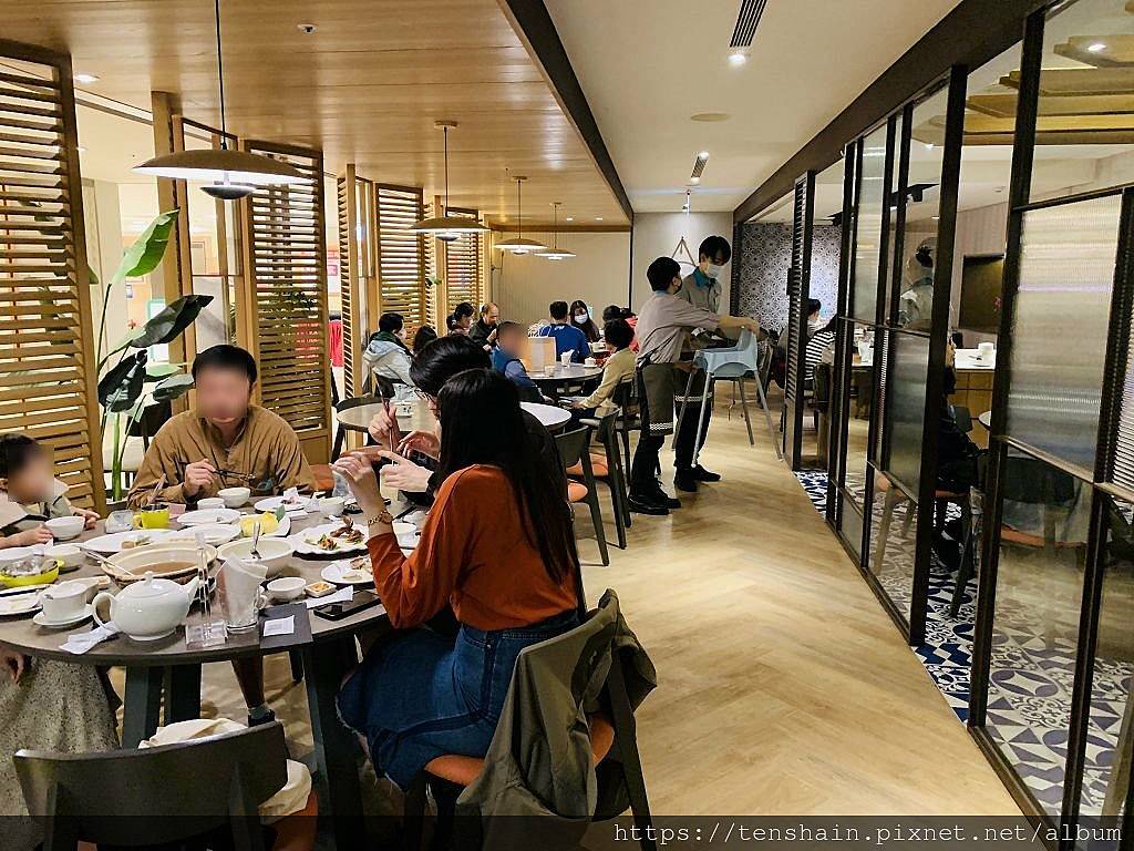 桌子和桌子之間都有足夠的距離,用餐體驗相當不錯。餐廳內圓桌居多,反而四人桌相對較少。不過,四人桌比尋常餐廳大得多,結果即使菜餚放在桌子中央,身高不高的老婆和女兒,夾菜時還是得努力伸長手臂才行,這真是意想不到的缺點。