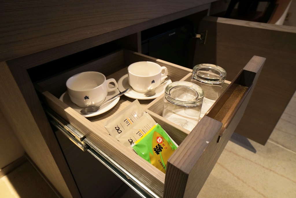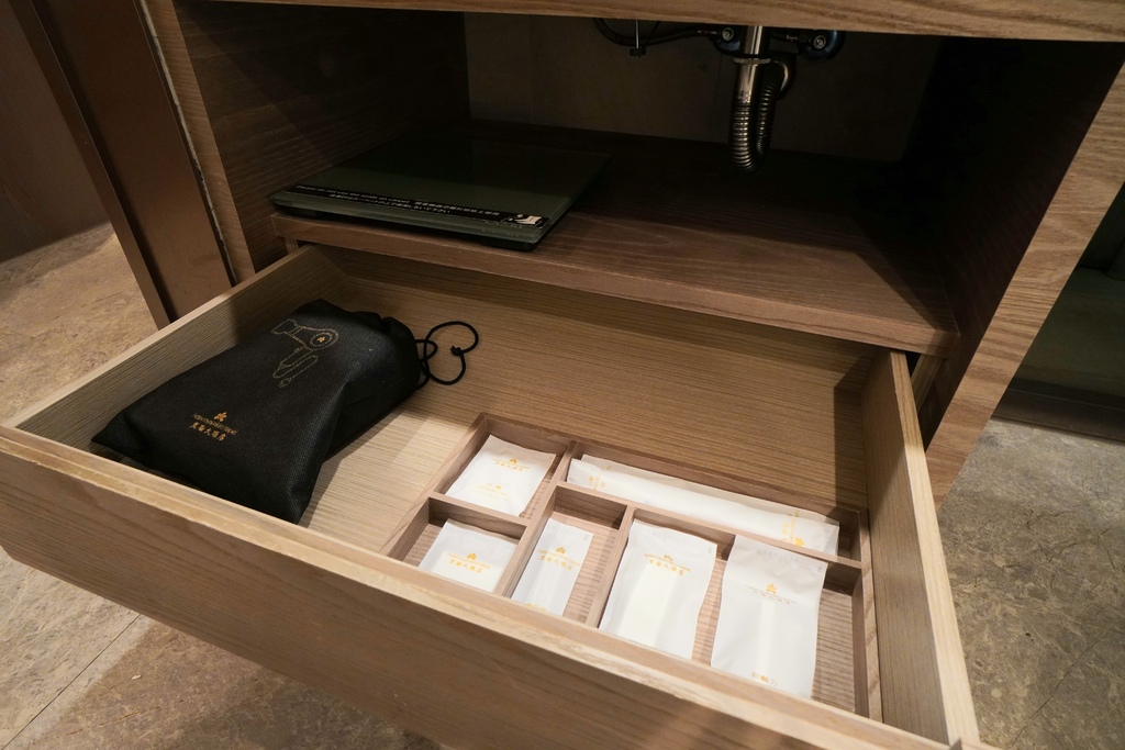 房內的迷你吧備有免費茶包、UCC咖啡、礦泉水,算是中規中矩型的備品。
