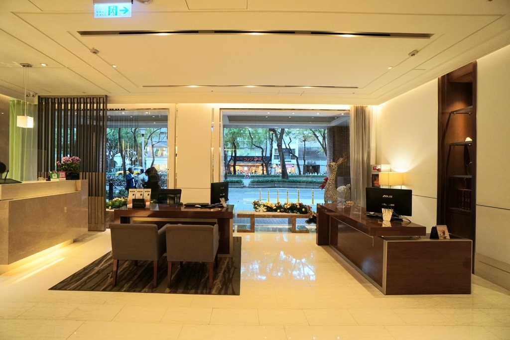 接待大廳也是以白色調為主顯得特別的典雅高尚,整個空間非常的寬敞就算是同時有多組客人來辦理入住、退房也沒問題。