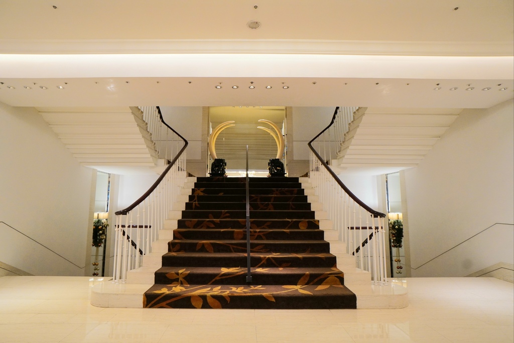 小金很喜歡台北老爺大酒店的裝潢跟擺設,聽友人說這是有經過翻修的(只是不知什麼時候呀)整體非常的雅緻,梯間還佈置了一點東方的元素,為整個空間增加了一點設計層次。
