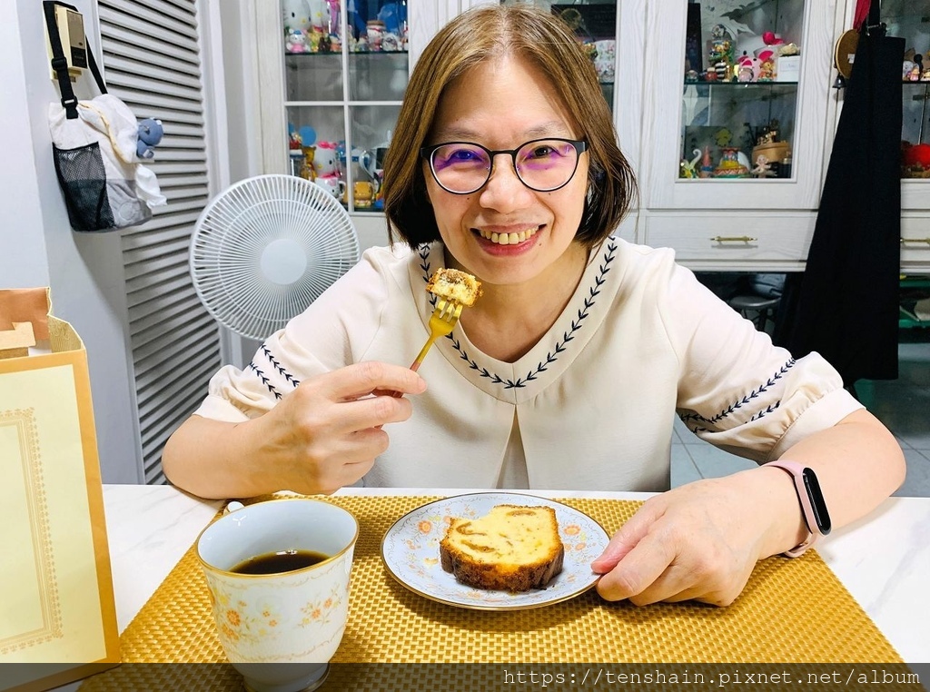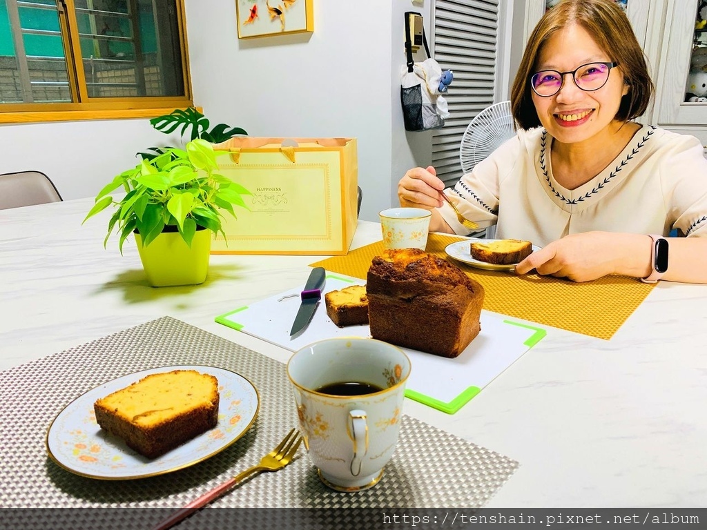 經過三個小時的冷藏,下午茶時間到來,準備開吃了!老婆想先吃"蘭姆無花果磅蛋糕",我完全同意。