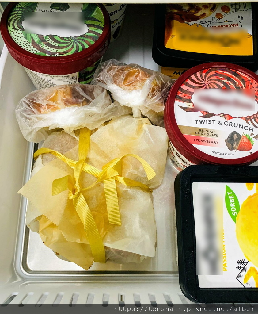不過,聽說冷凍後微解凍的"伯爵茶巴斯克蛋糕"才是最好吃的狀態。我和老婆都是念物理的,最不缺的就是實驗的精神,尤其是有關吃的實驗。於是我們把吃剩的"伯爵茶巴斯克蛋糕",全部放入冰箱冷凍層中,打算隔天再來試試口味如何。