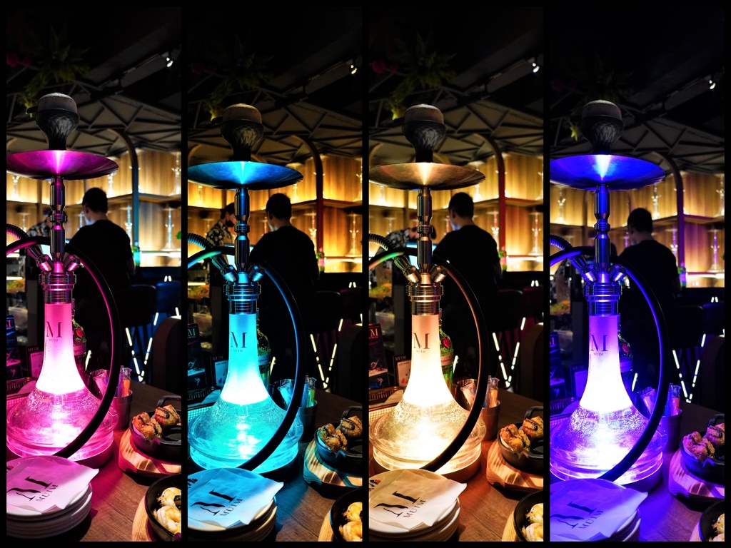 MUIM Taipei放感情水煙有四個系列可以選擇,花草芬芳、傳統中東、純韻奶香、漫布果園,加上這燈光變化的視覺效果氣氛真的超棒的,如果跟小金一樣是第一次嚐試的話可以選奶香、果園系列的。
