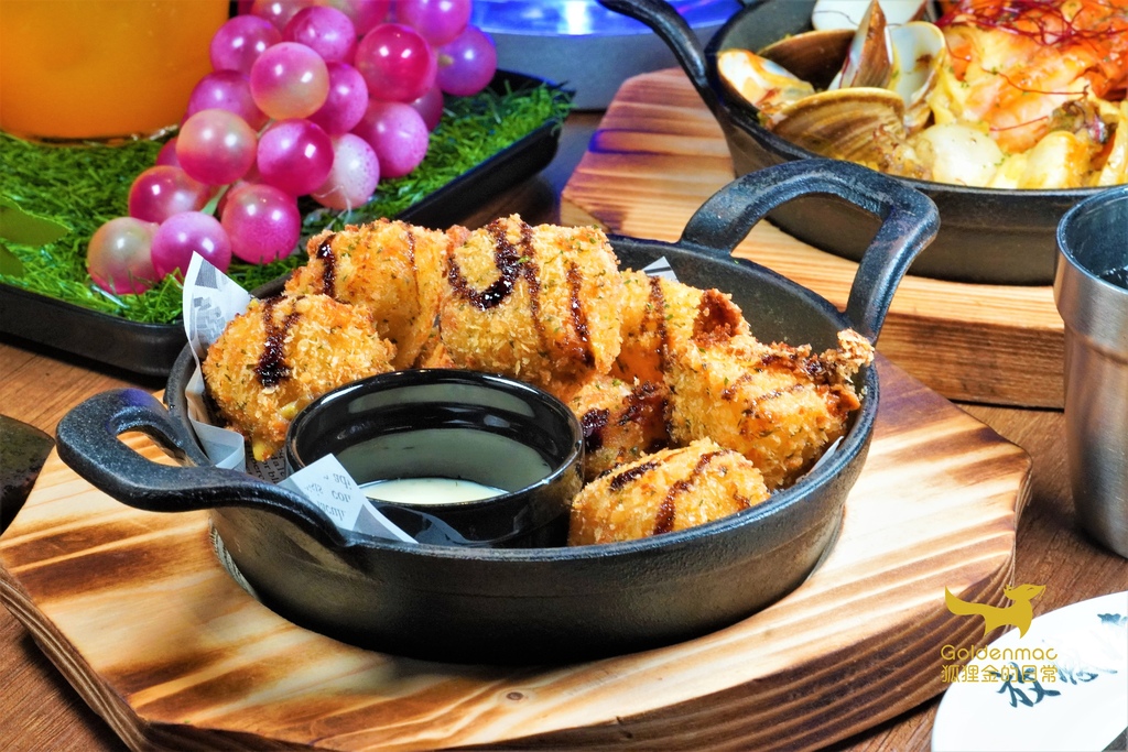 外表炸的金黃香酥裡頭的起司又濃又香~說真的不用沾醬本身就很好吃了,再沾上這酸酸甜甜的醬又是不同的風味表現真的很涮嘴的。