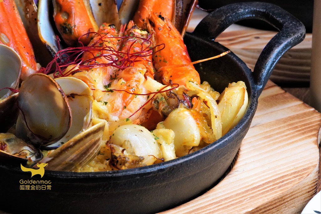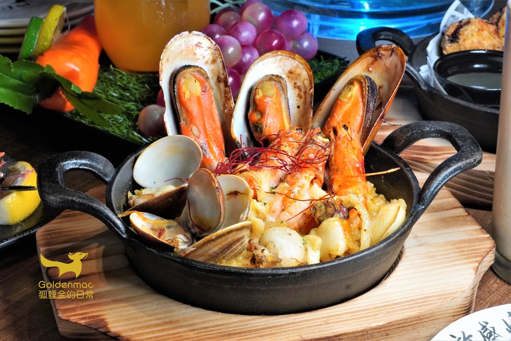 這道料理是不是一上桌就讓人食指大動,鮮蝦、淡菜、大蛤蠣、花枝~熱呼呼的鐵鍋更是把料理的香氣帶出來,海鮮控的朋友怎麼可以錯過這道菜呢!