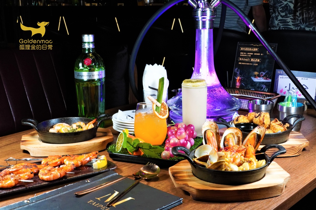 台北美食推薦。MUIM Taipei放感情提供非常豐富多元的餐點可以選擇,像是炸物、烤物、沙拉前菜、燉飯、義大利麵到排餐都可以吃的到,重點是還有多款特色調酒、香檳可以小酌放鬆,這次小金更是要來挑戰人生第一次的「水煙」體驗啦~MUIM Taipei放感情週末還會有帥哥美女DJ在現場Play Music跟大家同歡喲~
