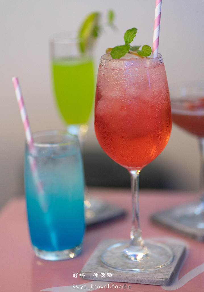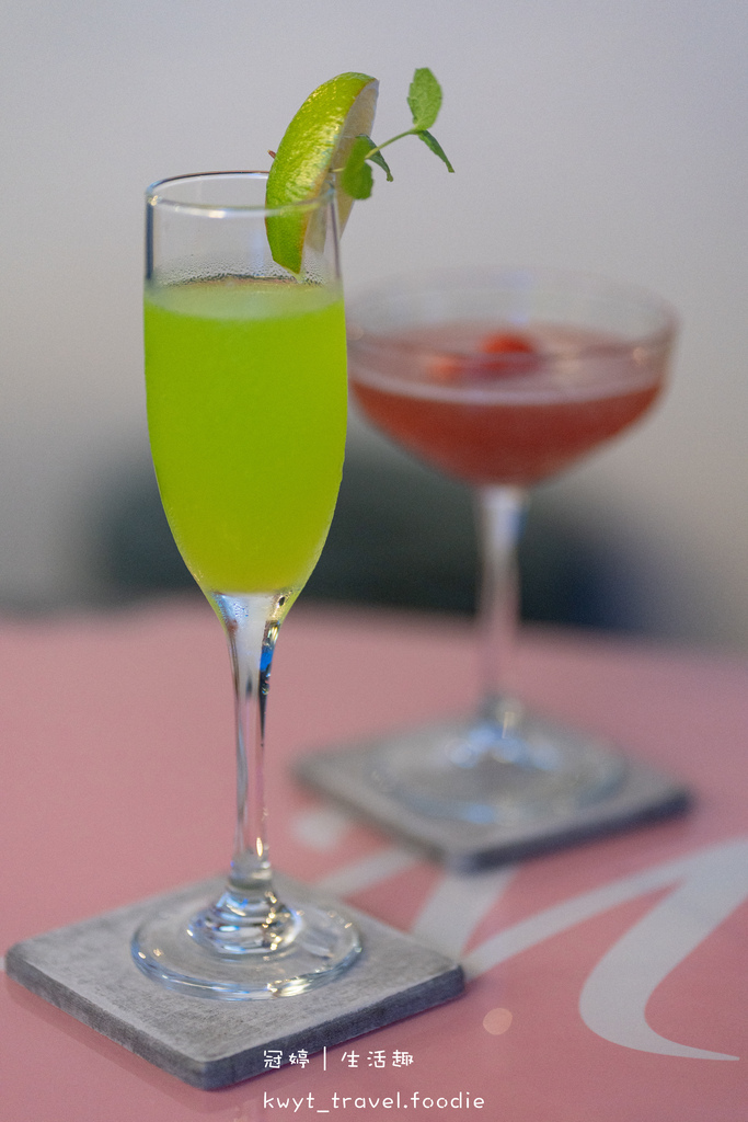 以伏特加為基酒,加入荔枝利口酒、草莓利口酒增添調酒的整體風味層次感,搭配薄荷葉、檸檬片點綴呈現。