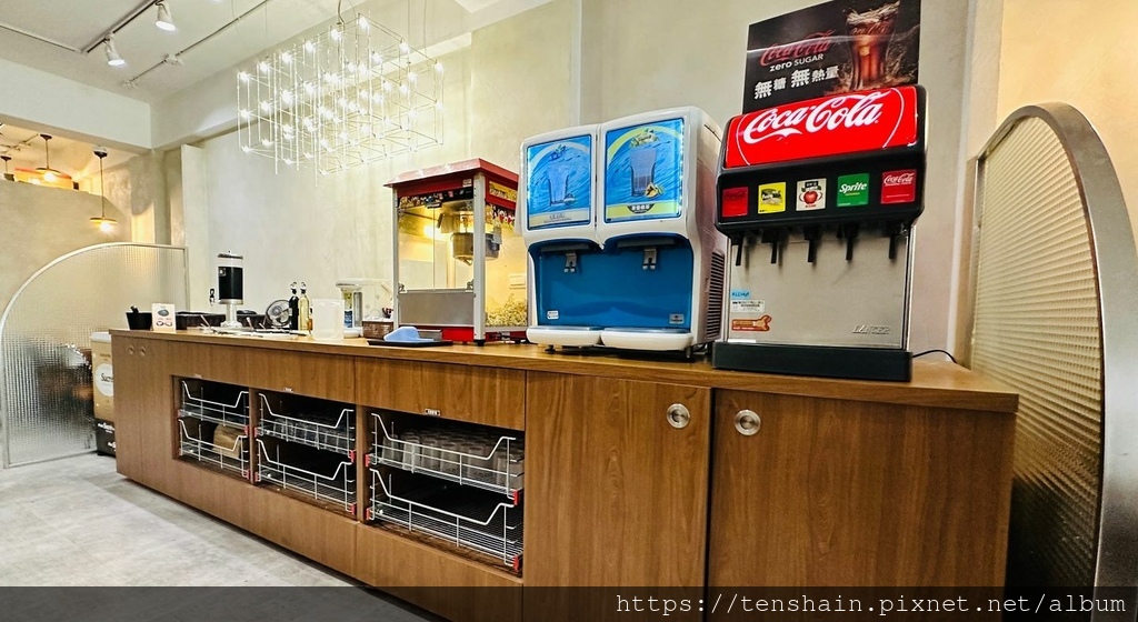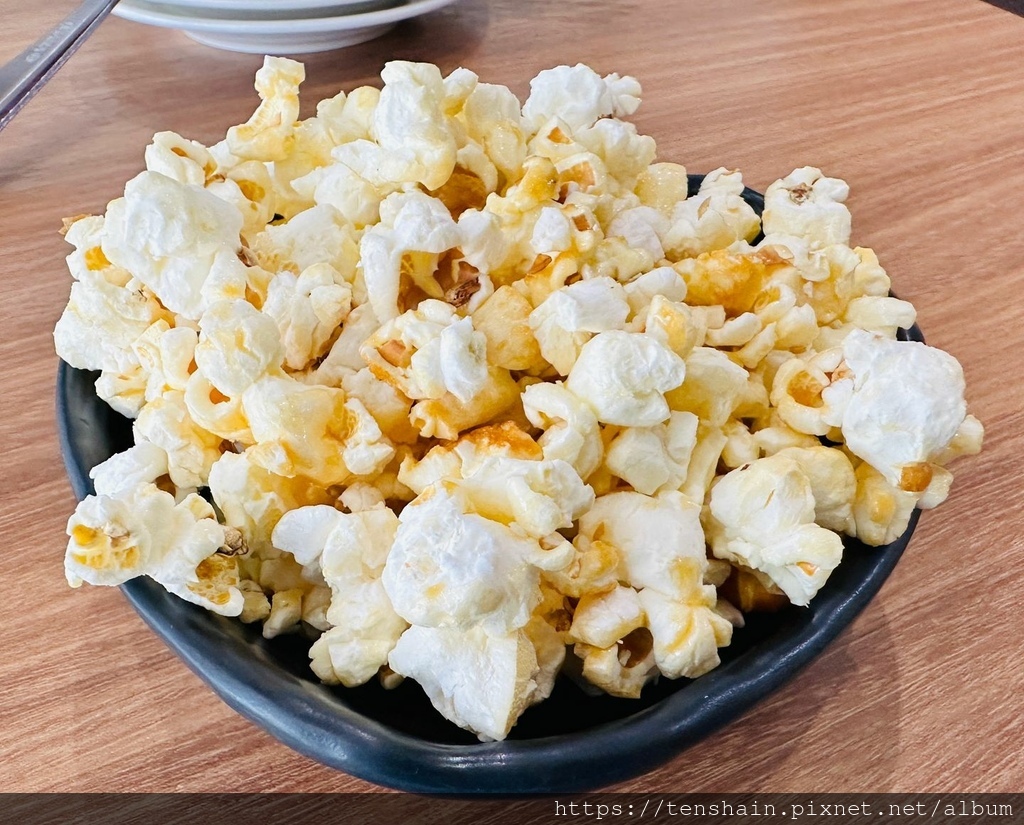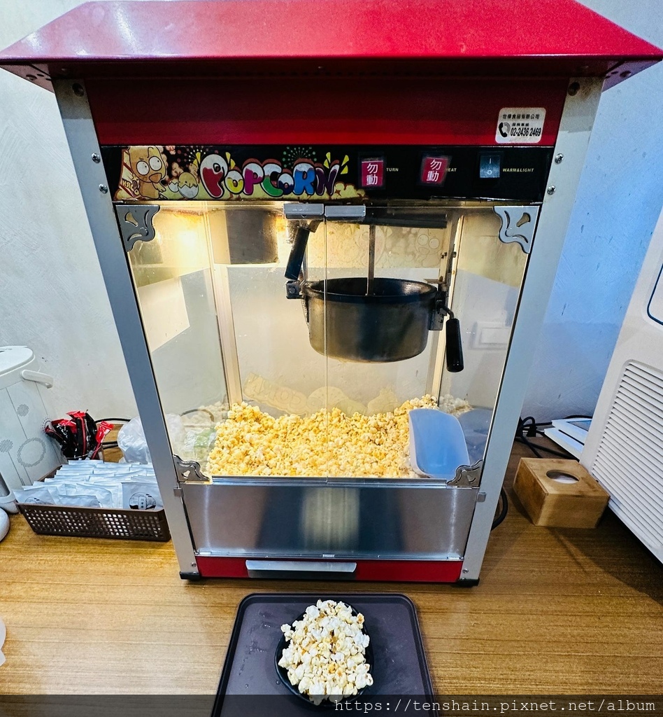 為什麼我一點完餐,就「迫不及待」來飲料吧報到?答案當然是為了這個媲美專賣店等級的爆米花啊!