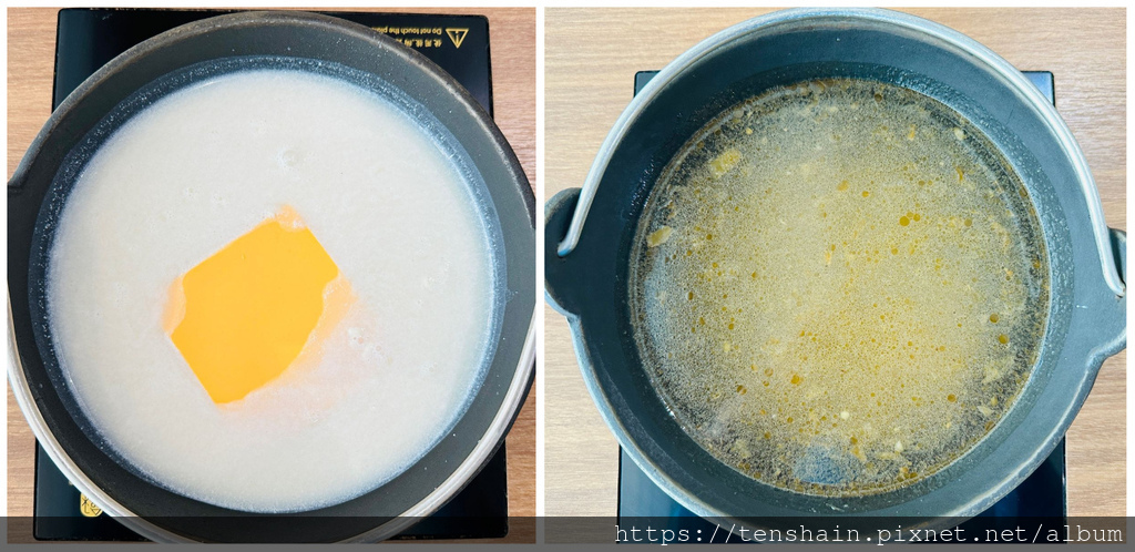 使用三種牛奶特調的「香醇厚奶鍋」,散發出香醇濃郁的味道;一大片黃色起司漂浮在乳白的湯汁上,畫面超療癒。微微攪拌讓起司熔化,小火慢煮,「香醇厚奶鍋」用來煮肉類最適合。因為牛奶不僅可以讓肉類增添甜甜的乳香,還有讓肉類軟化的效果,肉質吃起來也會更鮮嫩。