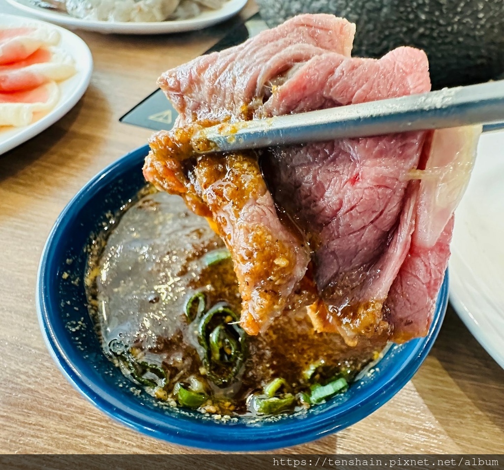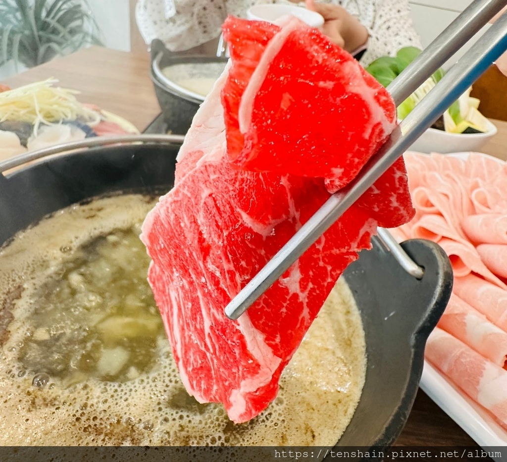 美國霜降牛恰到好處的油花,吃起來香氣足、嫩度夠、肉汁豐富,比起上次吃的低脂板腱牛更容易咀嚼。若是用「香醇厚奶鍋」來煮,肉質會更溫潤細膩,口感滑順,咀嚼之後濃郁香醇的牛肉香滲出,美味得令人驚艷!