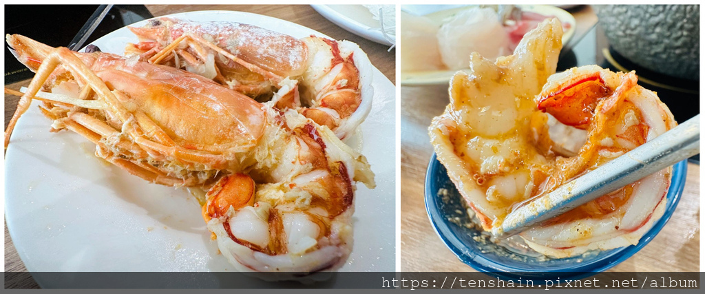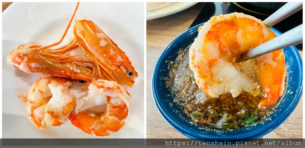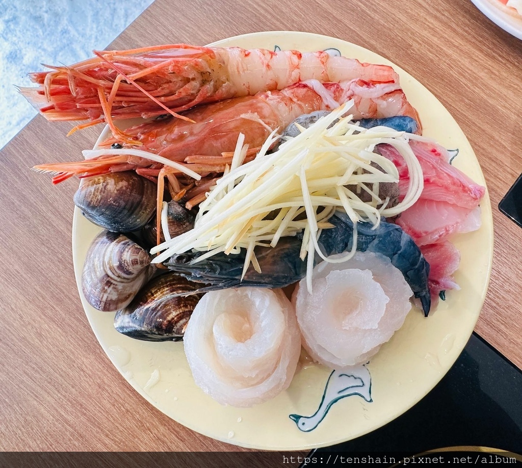 海鮮種類很多,只吃白蝦怎會過癮?「頂級海陸拼盤」裡有白蝦、草蝦、天使紅蝦、鯛魚、雪花魚捲、蛤蜊,喜歡海鮮的朋友,記得點起來。