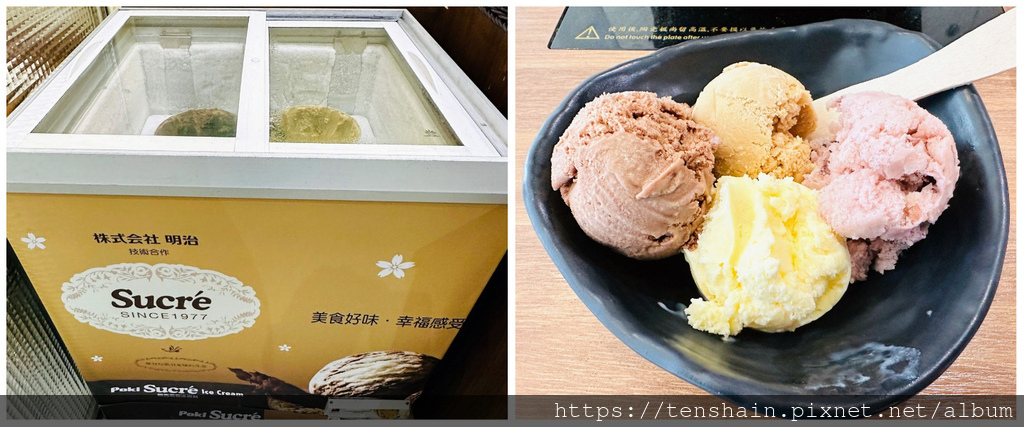 即使已經飽到吃不下副餐,冰淇淋卻是一定要吃的。四種口味的日本明治冰淇淋,我最愛的是紅豆口味,因為裡面有整顆的紅豆,甜而不膩,忍不住讓我多吃了一球!