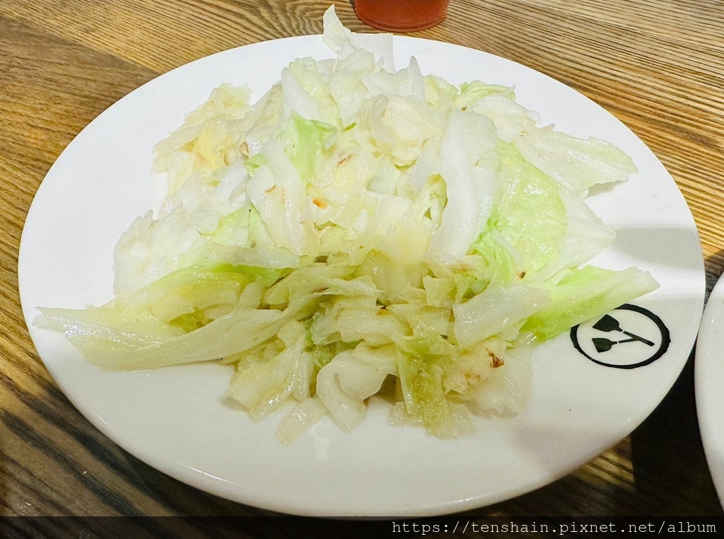 豆芽菜淡而無味,炒高麗菜雖然也偏淡,但口味還不錯,只是菜梗有點多。