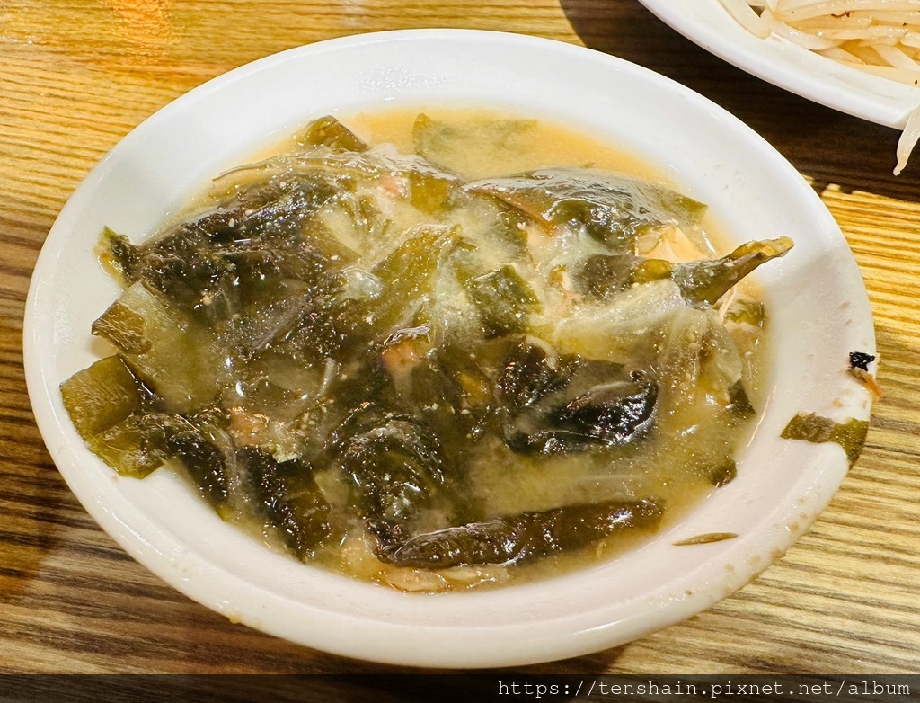 如果說"雙連蛋糕"是最讓我們失望的菜色,那麼免費的例湯就是出乎意外的驚喜。滿滿的料,不但有海帶,還有鮭魚塊,就連鮭魚骨都煮到一咬就化的程度,加上濃郁的味噌,非常夠味,讓我連喝三大碗。