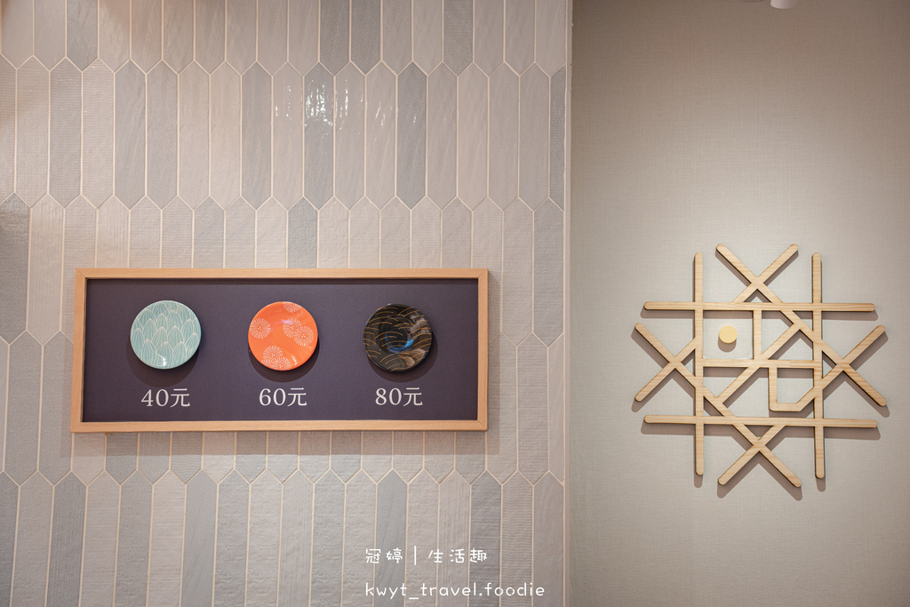 在用餐空間裡設置一面盤子顏色、價格,方便用餐朋友們區分每一道餐點的價位。