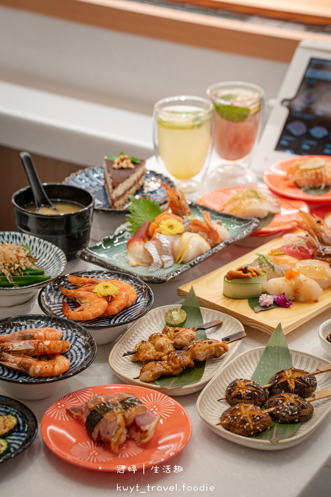 可拿取迴轉壽司軌道上的現做壽司、生魚片,也可以使用桌面上的平板點餐。