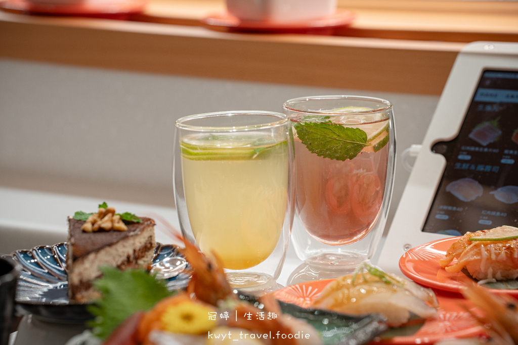 在光り鮨光迴轉壽司復北店用餐,有供應免費茶包、熱水,搭配餐點享用。