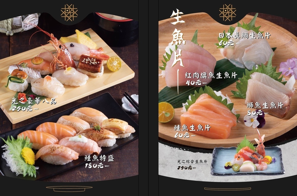 松山區迴轉壽司推薦-光り鮨光迴轉壽司復北店菜單 (來源:光り鮨光迴轉壽司復北店FB粉絲頁,2023.07)