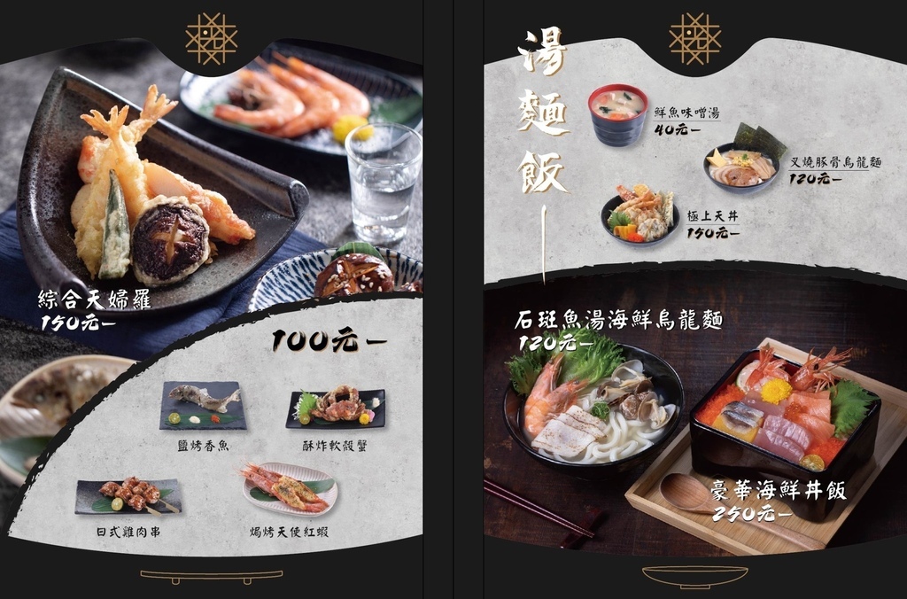 供應現點現作的軍艦系列壽司、手卷系列壽司、烤、炸物系列壽司、生魚片系列握壽司、生魚片系列、盛合壽司系列、炸物系列、湯麵飯系列、小菜系列、飲料系列、甜點系列等選擇多樣化、價格親民的手做餐點。