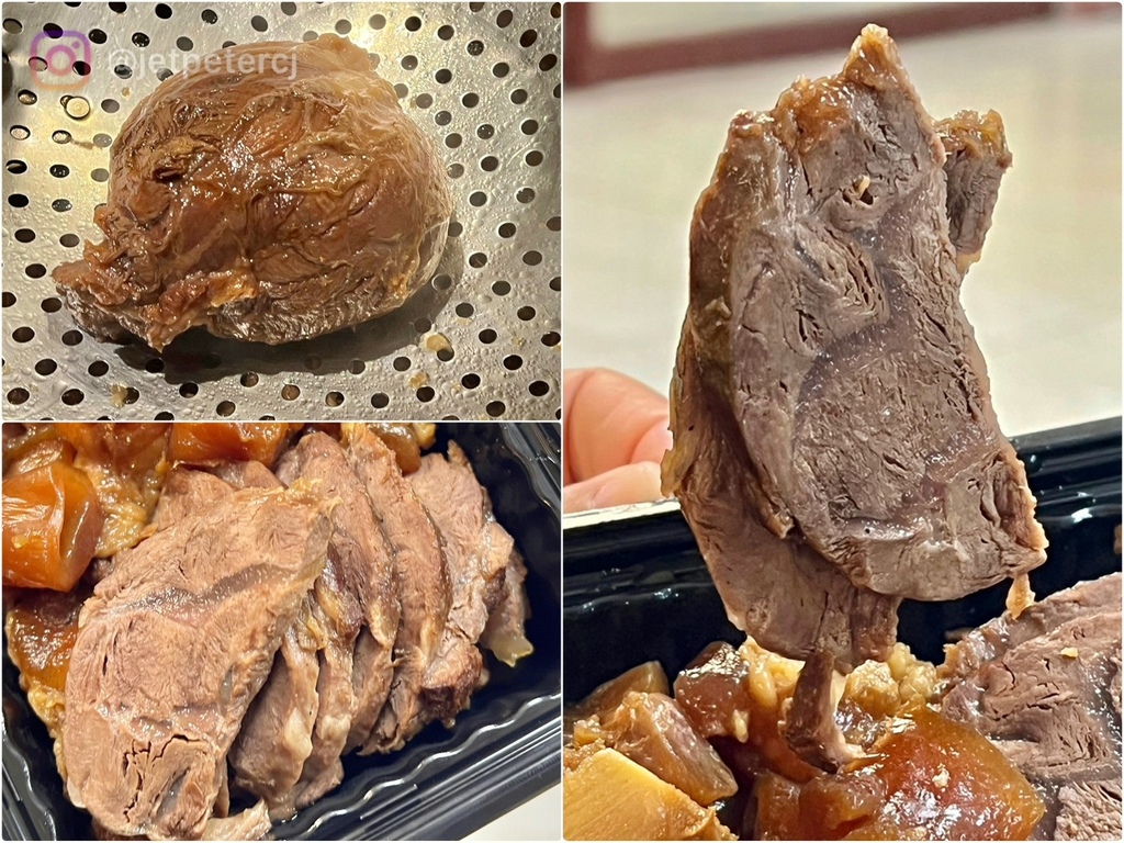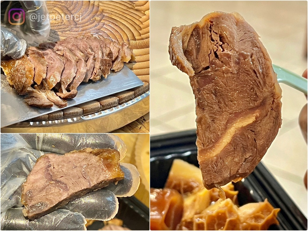 4.嚴選頂級牛腱心,這可是相當珍貴的部位,每頭牛只有兩條而已!看看這個牛肉切面,肉色相當漂亮,肉質細緻不會有韌韌的纖維,來非食不可就能品嚐到頂級的滷牛肉唷