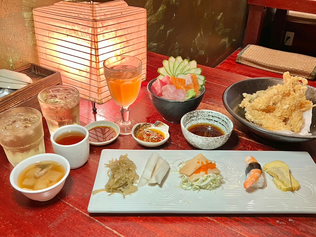 推薦雙人套餐,品項超級豐富,開胃五色小品、生魚片、野菜和風沙拉,清爽又好吃,讓人胃口大開~炸蝦天婦羅🍤五大尾吃起來超酥脆;烤鰻魚油脂肥美,吃起來口感軟嫩香噴噴~