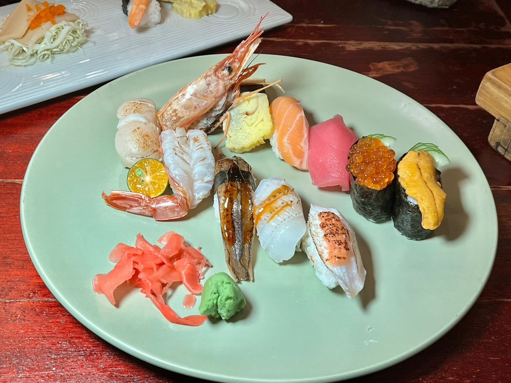 吃日本料理壽司一定要吃~升級豪華握壽司10貫,生魚片有夠大片,吃起來滋味相當鮮甜~我還加點五六日限定的炙燒明太子醬大蝦握壽司,蝦肉彈牙吃起來口感超豐富👍