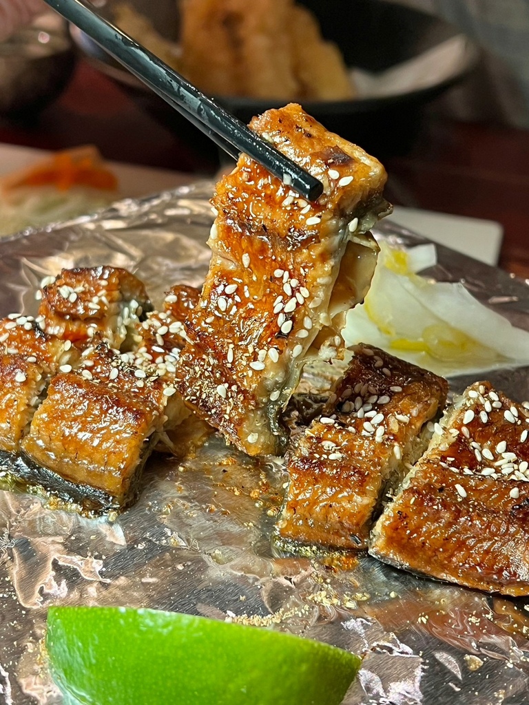 烤鰻魚放在烤爐上炭火加熱,讓入口的口感處於最佳狀態,鰻魚調味不會過鹹過甜,熟度抓得剛剛好,喜歡吃鰻魚的朋友可別錯過了