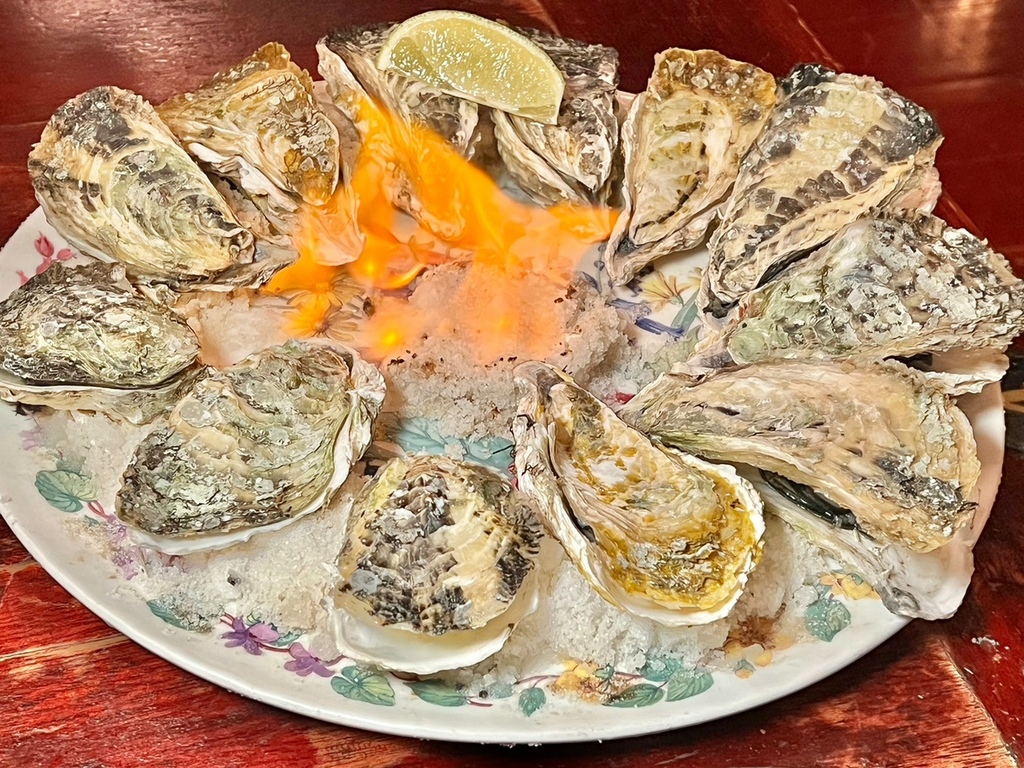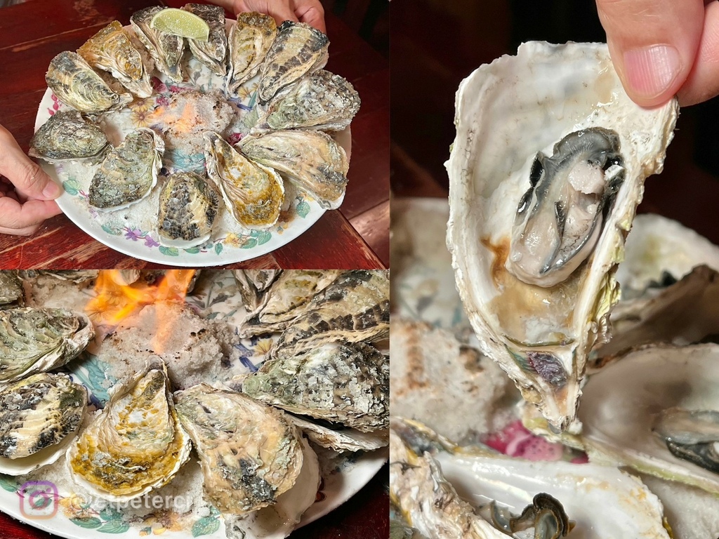 澎湖產地直送超新鮮的生蠔,一上桌就會相當吸睛,居然還在加熱,中間冒出火焰超級特別又有創意的菜色