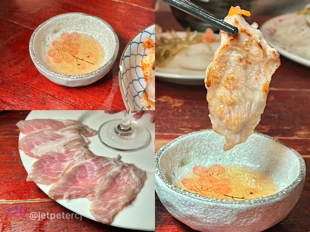 日式經典的味噌烤松阪豬肉,彈牙的松阪豬肉,口感脆脆的很彈牙,吃起來完全不會油膩,沾上特製醬料帶點微微的酸甜,可以去除油膩感更涮嘴~