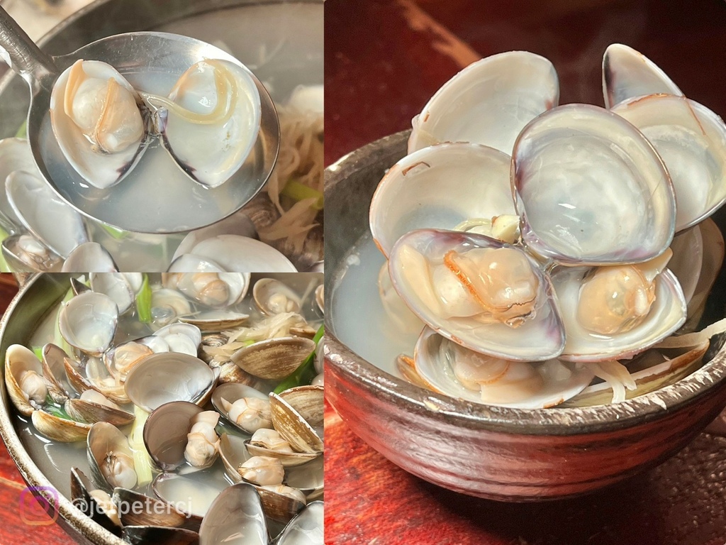 小林英夫酒蒸蛤蜊沒有額外的調味,喝得到蛤蜊本身的湯汁,熟度抓得剛剛好,蛤蜊飽滿多汁,吃起來不會乾乾的