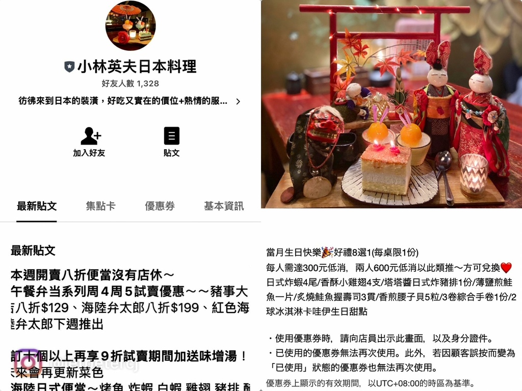 加入小林英夫LINE@好友,當月壽星還可以享有好禮7選1~不定期推出多重好康優惠,三不五時就想來這用餐
